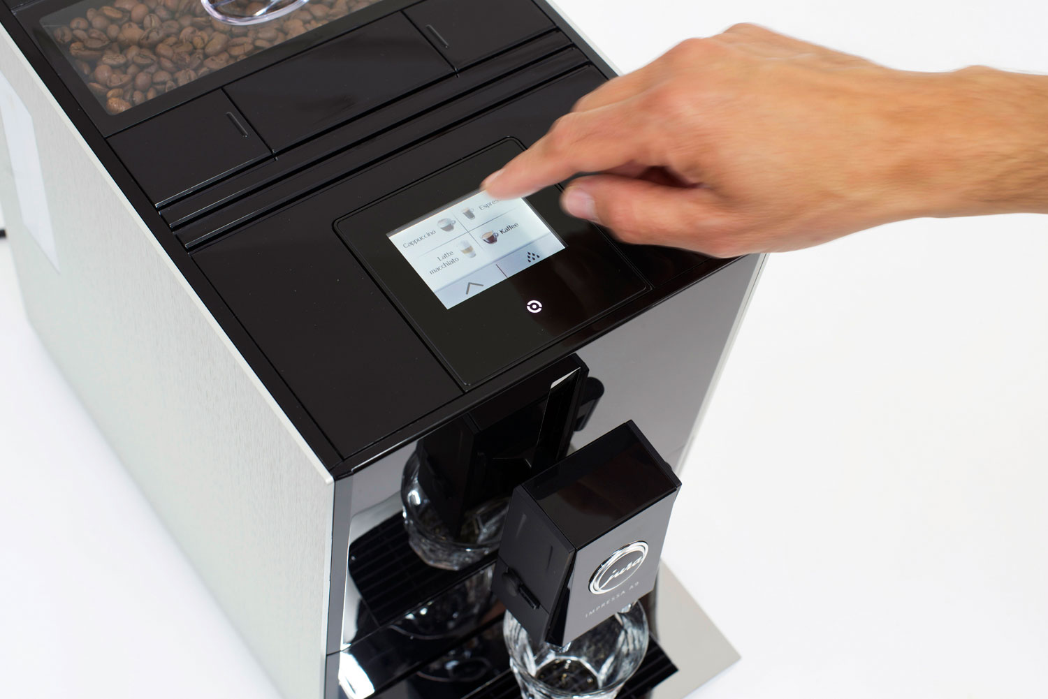 Das Design der Jura Impressa A erinnert an die Präzision und Hochwertigkeit eines geschliffenen Diamanten. Der kubische Grundkörper des Gerätes ist leicht nach vorne geneigt. Das signalisiert dem Benutzer Aufmerksamkeit und Bereitschaft. Die Modellpalette wird durch verschieden gestaltete Seitenwände aus Kunststoff oder Aluminium differenziert. Wir haben für die Impessa A-Linie das Produktdesign und das Interface-Design entwickelt.